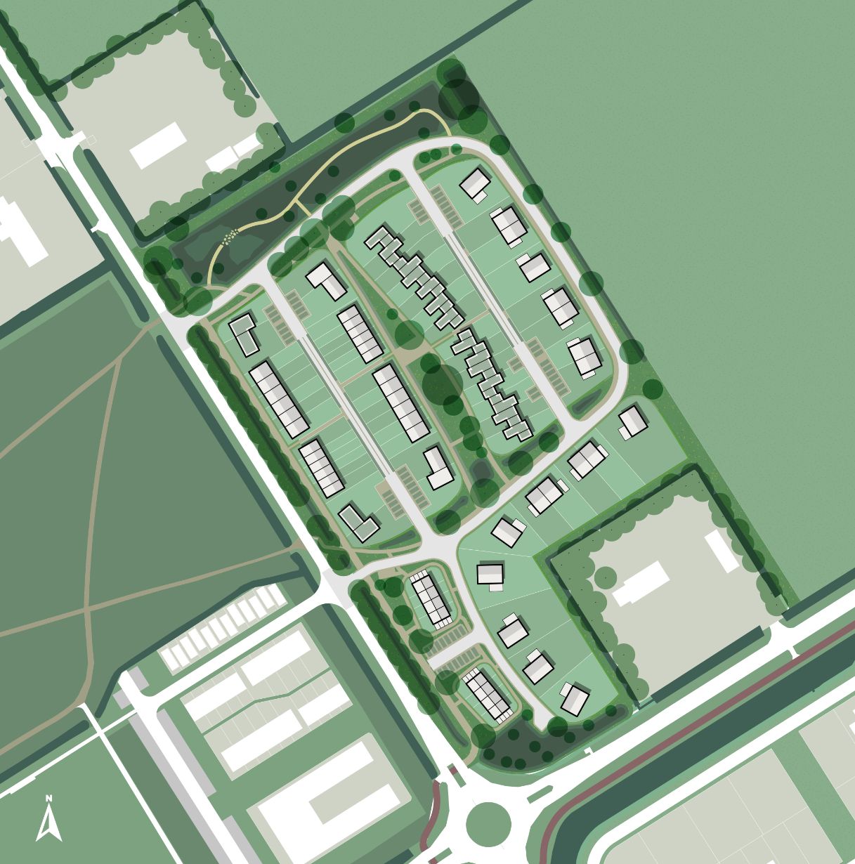 Dit groene project biedt woningen voor starters, doorstromers, senioren en zelfbouwers. Het wordt een groene, ruim opgezette wijk met veel variatie in woningtypen.